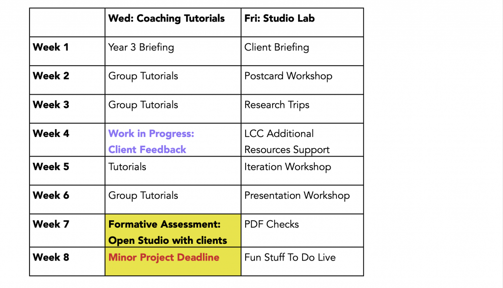 As part of your formative assessment, there will be an Open Studio on Wednesday 12th November 2025 in which you will showcase this work to the client.